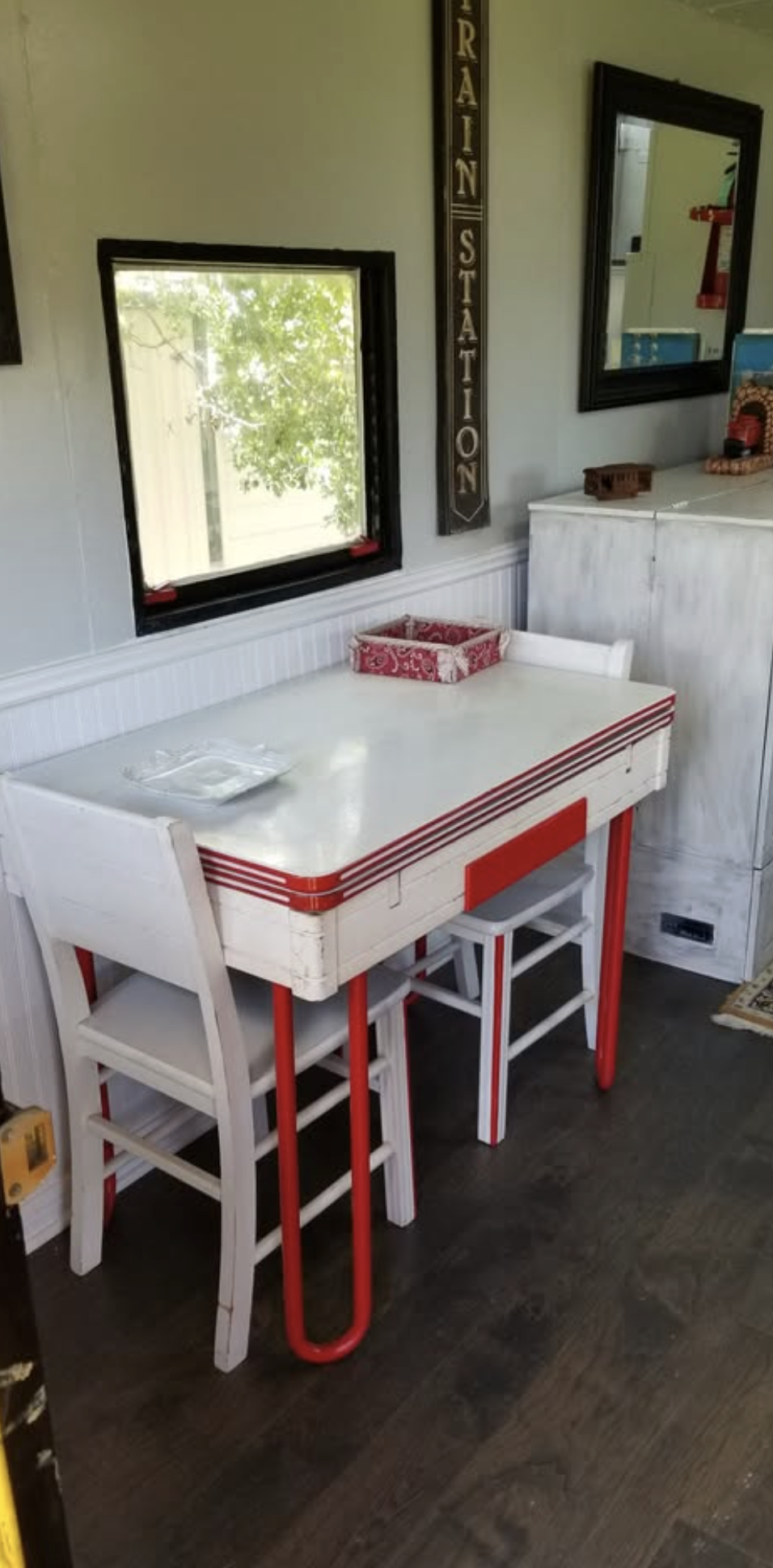Allow me to introduce you to this one sexy piece of history. She was a 1957 Burlington Northern Caboose and has been expertly restored and converted into complete living quarters. We kept as much of the historic feel that we could, while making it an enjoyable place to live.