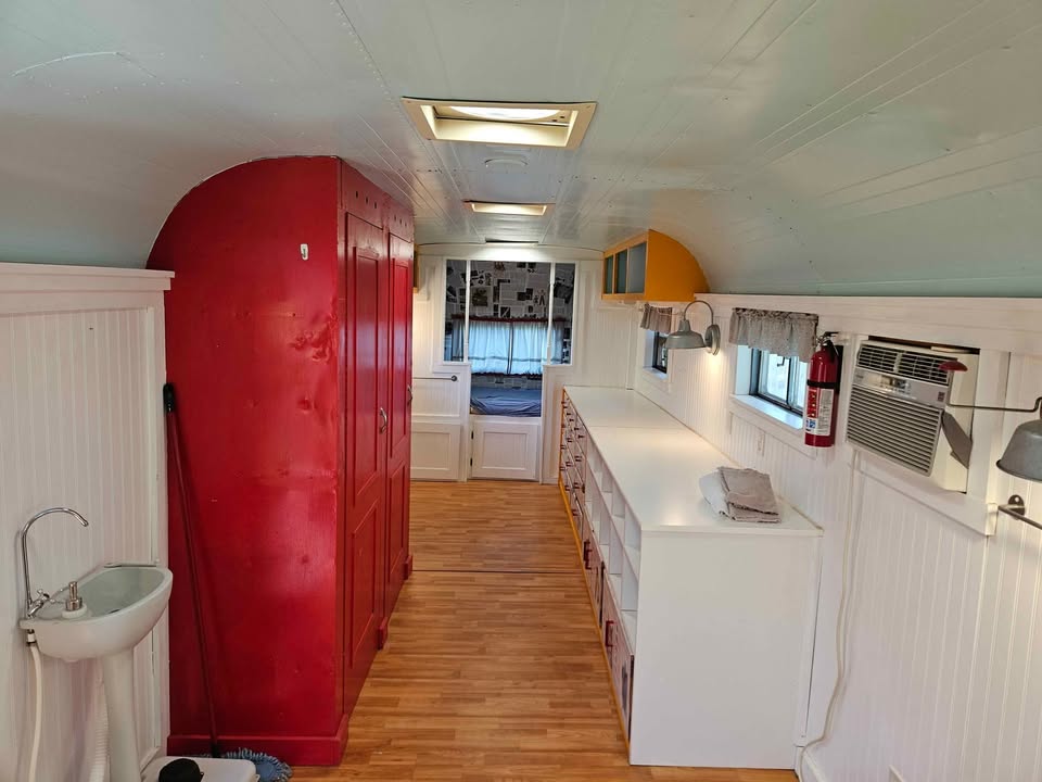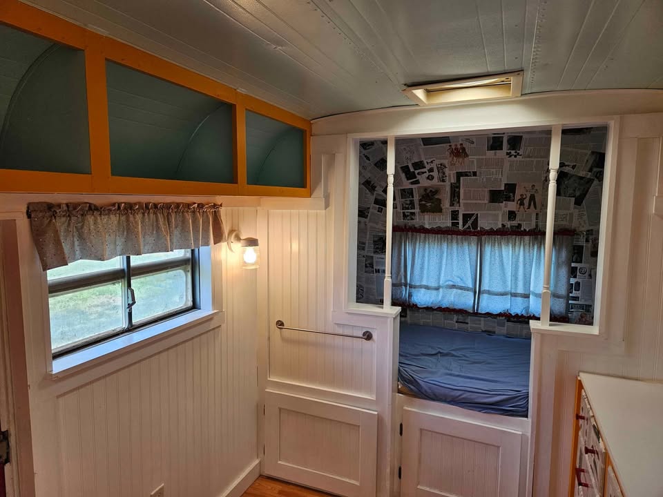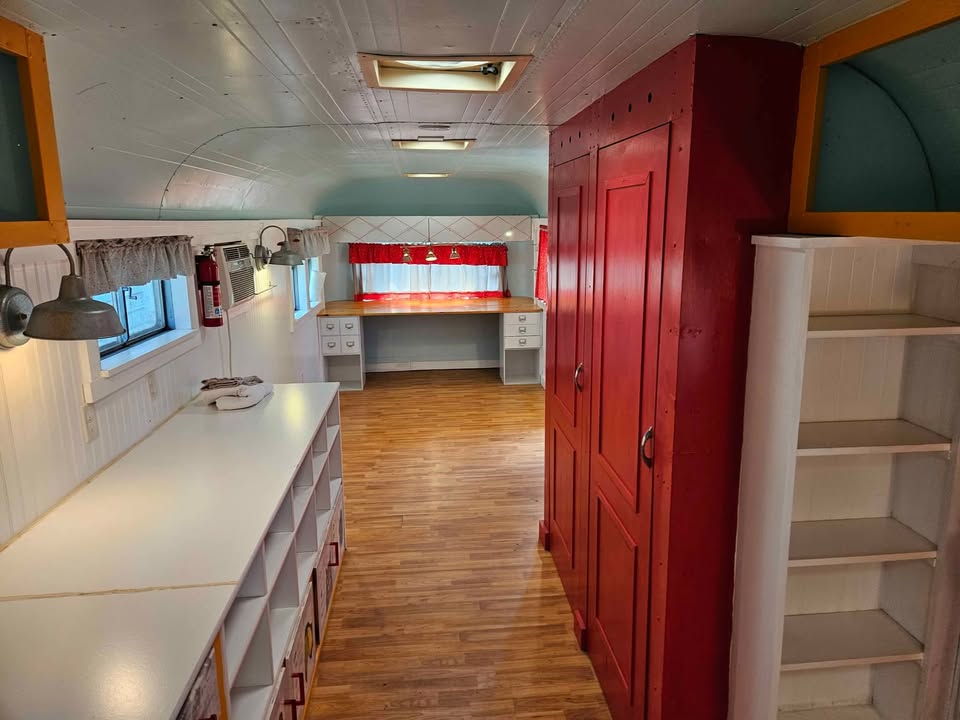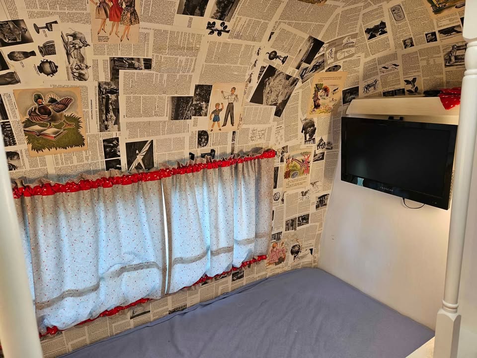 Calling all crafters! Wouldn’t this Kansas Streamline trailer for sale by owner make the cutest crafting center or guest cottage for your back yard? It has a TV and a bed as well as crafting table and storage.