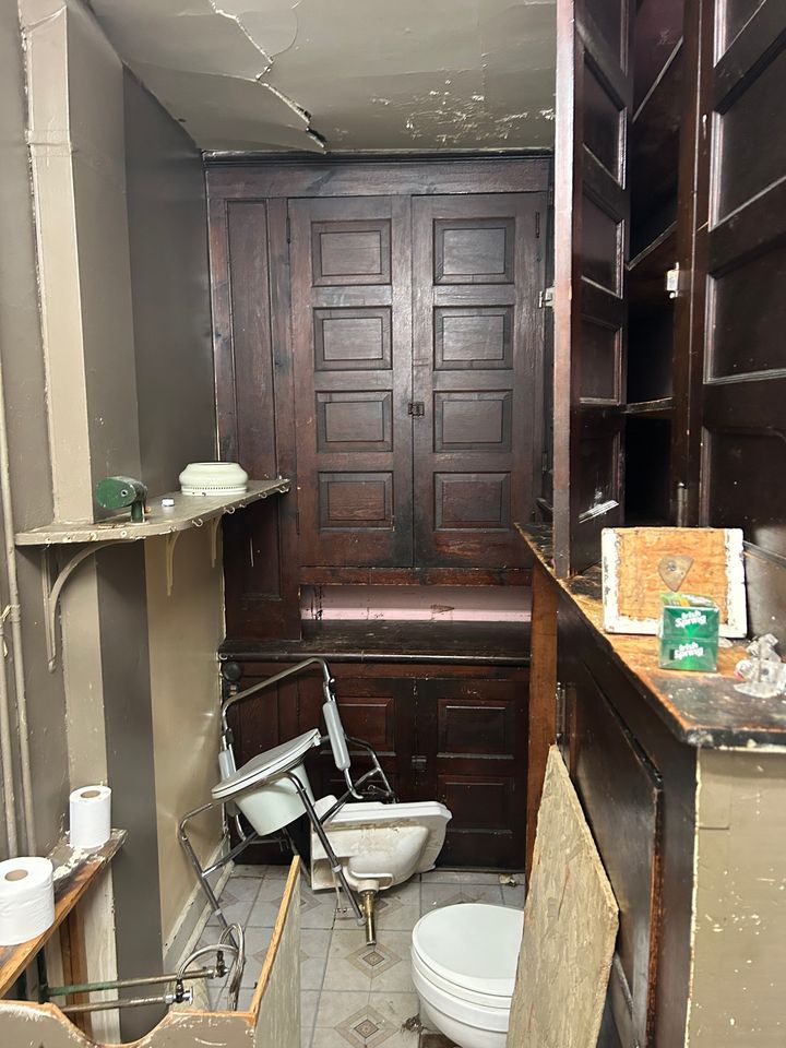 This four bedroom, 1.5 bath Pennsylvania fixer upper is for sale by owner. You will not find it on MLS. The home is a project, but it offers hardwood floors, French doors, built-ins and a wonderful old farm sink. The real highlight, however, is the butler’s pantry.