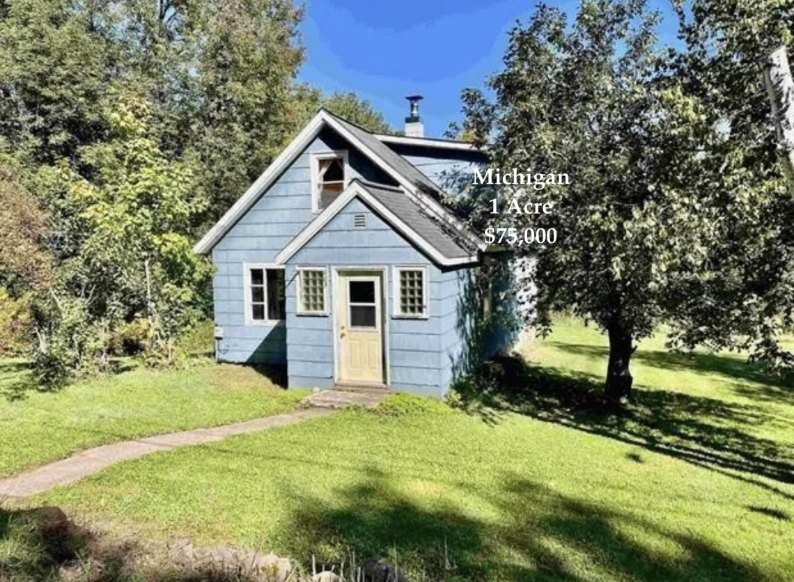 If you dream of a life in the country on a budget, this Upper Peninsula home for sale on 1.5 acres may pique your interest. The three bedroom, one bath home is $75,000 and features two garages, hardwood floors, built-in shelves and basement with outside entrance. It is located within minutes of several lakes.