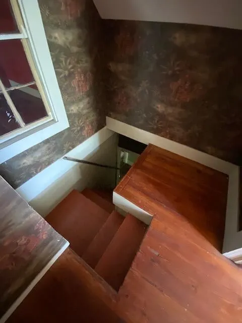 Here is a Victorian home for sale with a wrap-around porch. The fixer upper has hardwood floors, three bedrooms, three baths, fireplace mantel, pocket doors.