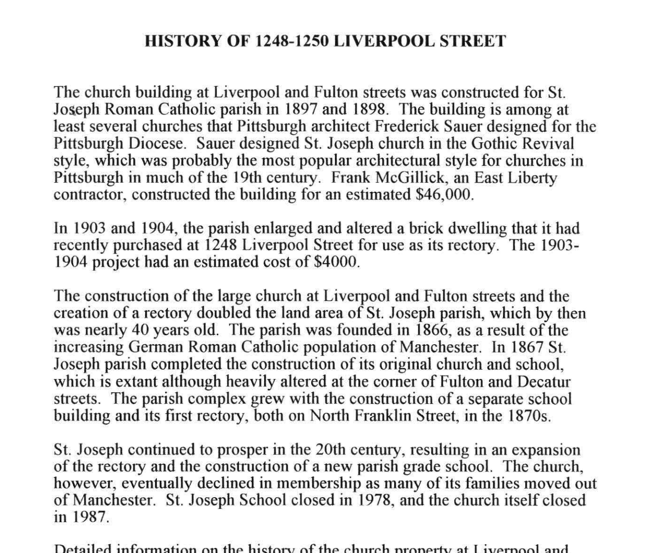 Welcome to 1248 Liverpool St! The buildings solid stone exterior and classical proportions convey a strong sense of permanence. Out back features a 3 car garage and small yard space. The interior historic features allow for creative re-imagining – perfect for someone who is ready to bring this building back to life. Located within Pittsburghs North Side, the property sits just minutes from Downtown, the North Shore, and Allegheny Commons Park. Its setting in the Manchester Historic District offers convenient access to major highways, public transit, and a growing mix of residential and community spaces all within one of the citys most architecturally rich neighborhoods.