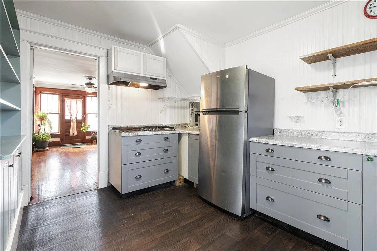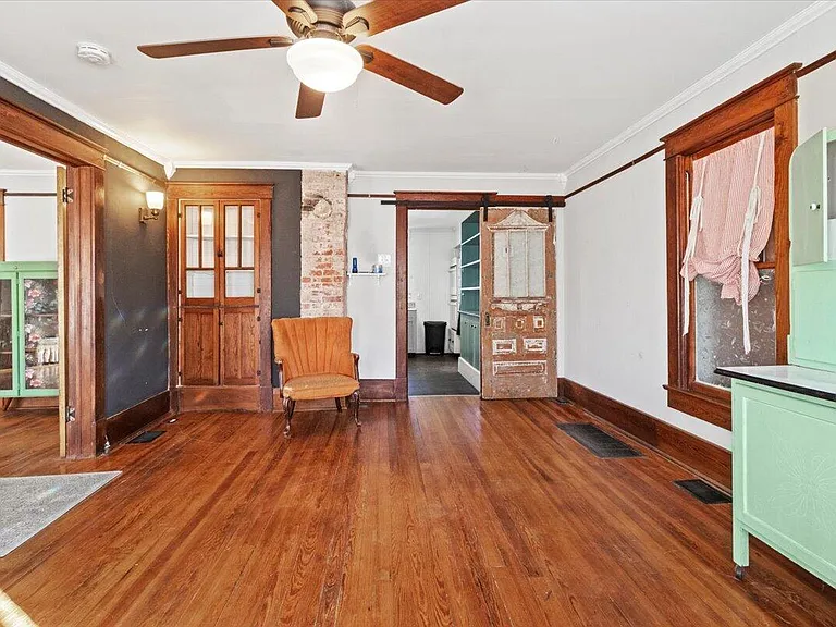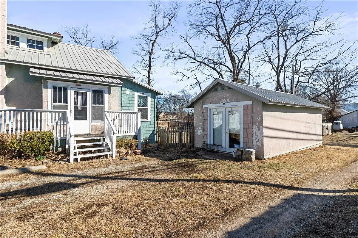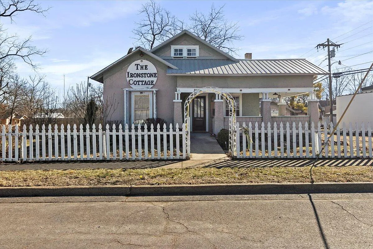 Here is a charming Missouri Craftsman bungalow for sale on a half acre lot in the Ozarks. The three-bedroom, two-bath home has hardwood floors, unpainted woodwork, five-panel doors, French doors and built-ins. The home also has a metal roof, front porch and an outbuilding. The former Ironstone Cottage opened in 2018 and was a tea room and garden run by the Holsti family.