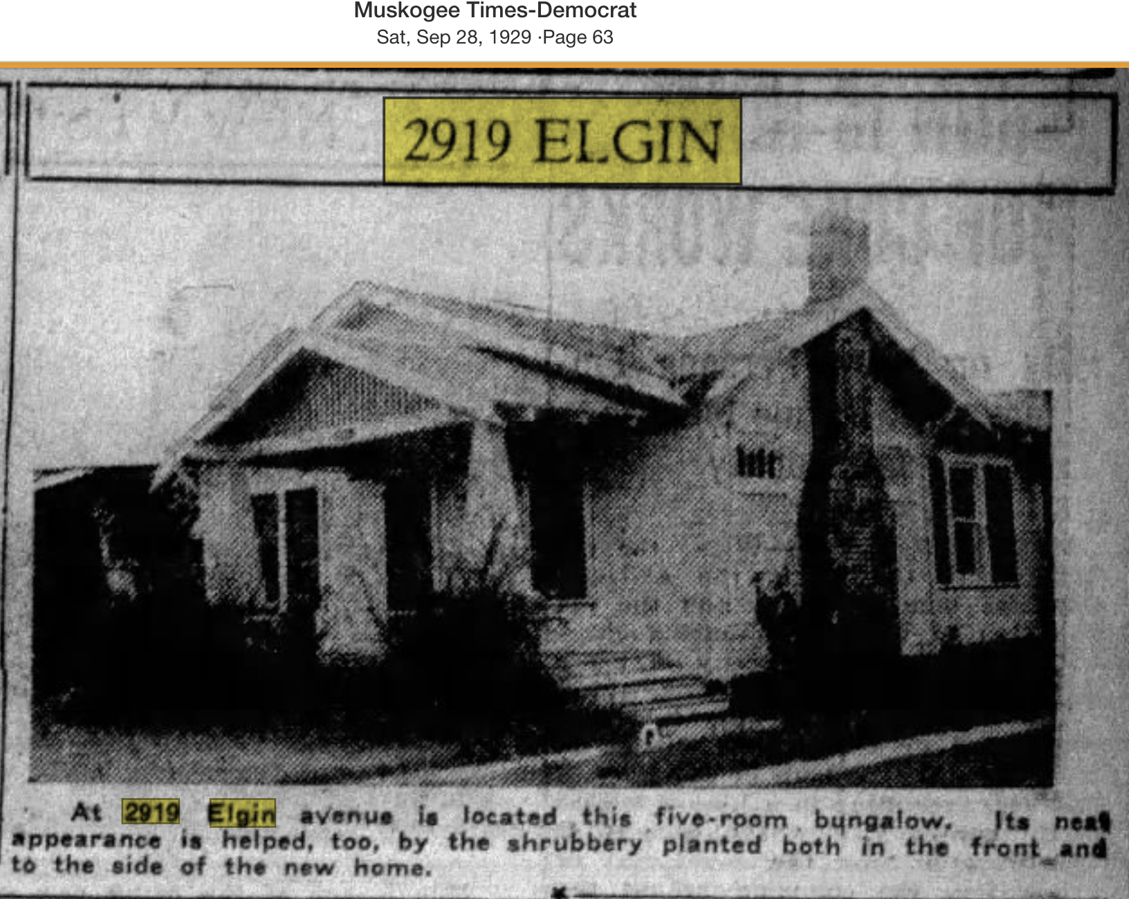 I was so thrilled to find a 1929 photo of this Oklahoma handyman special. Porch pillars and windows have changed, but the porch gable is still the same. The three bedroom-one bath home has a fireplace (nonfunctioning) with flanking built-ins, eat-in kitchen, tiled bathroom, and city water and sewer.