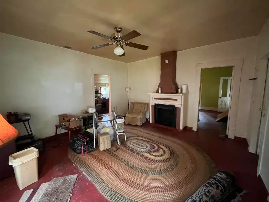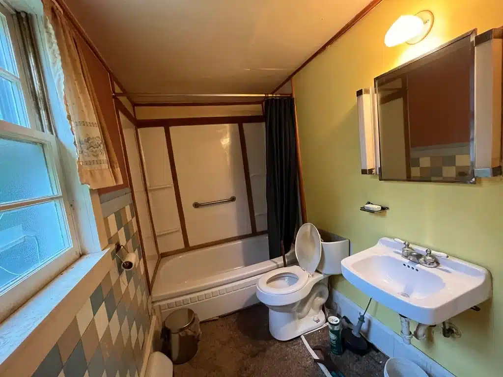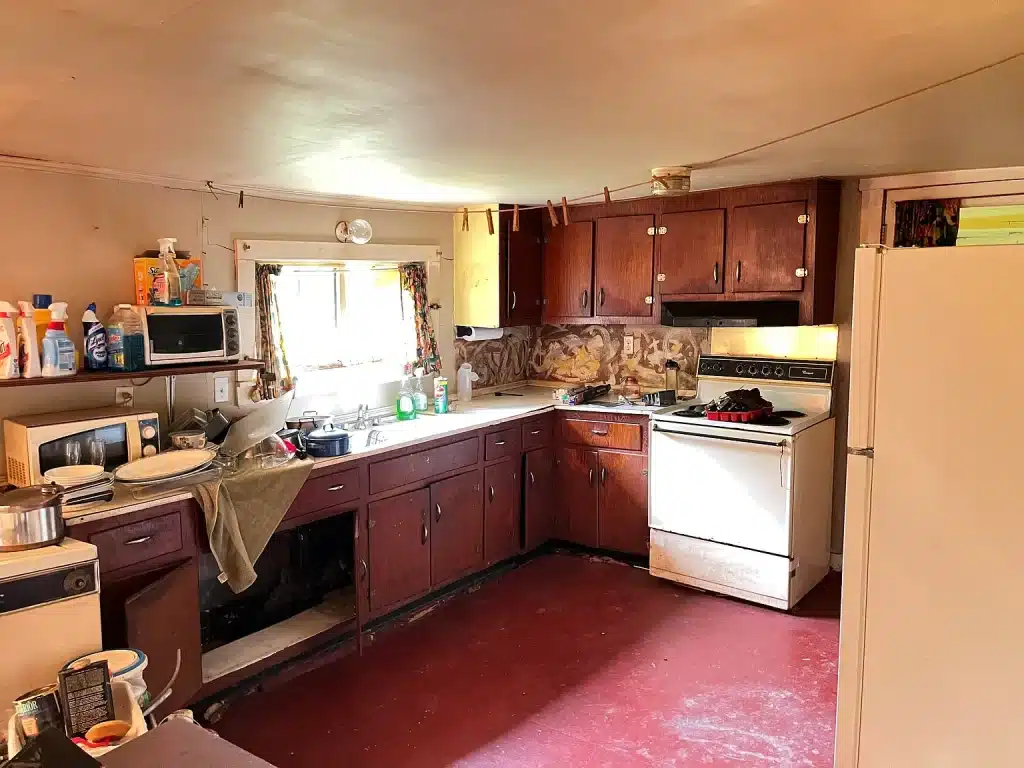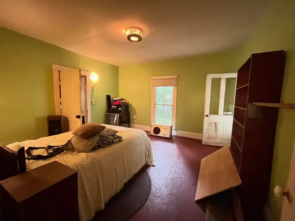 Here is a cheap old house in Kentucky with one bedroom, one bath, tin roof, imbricated shingles and fireplace.