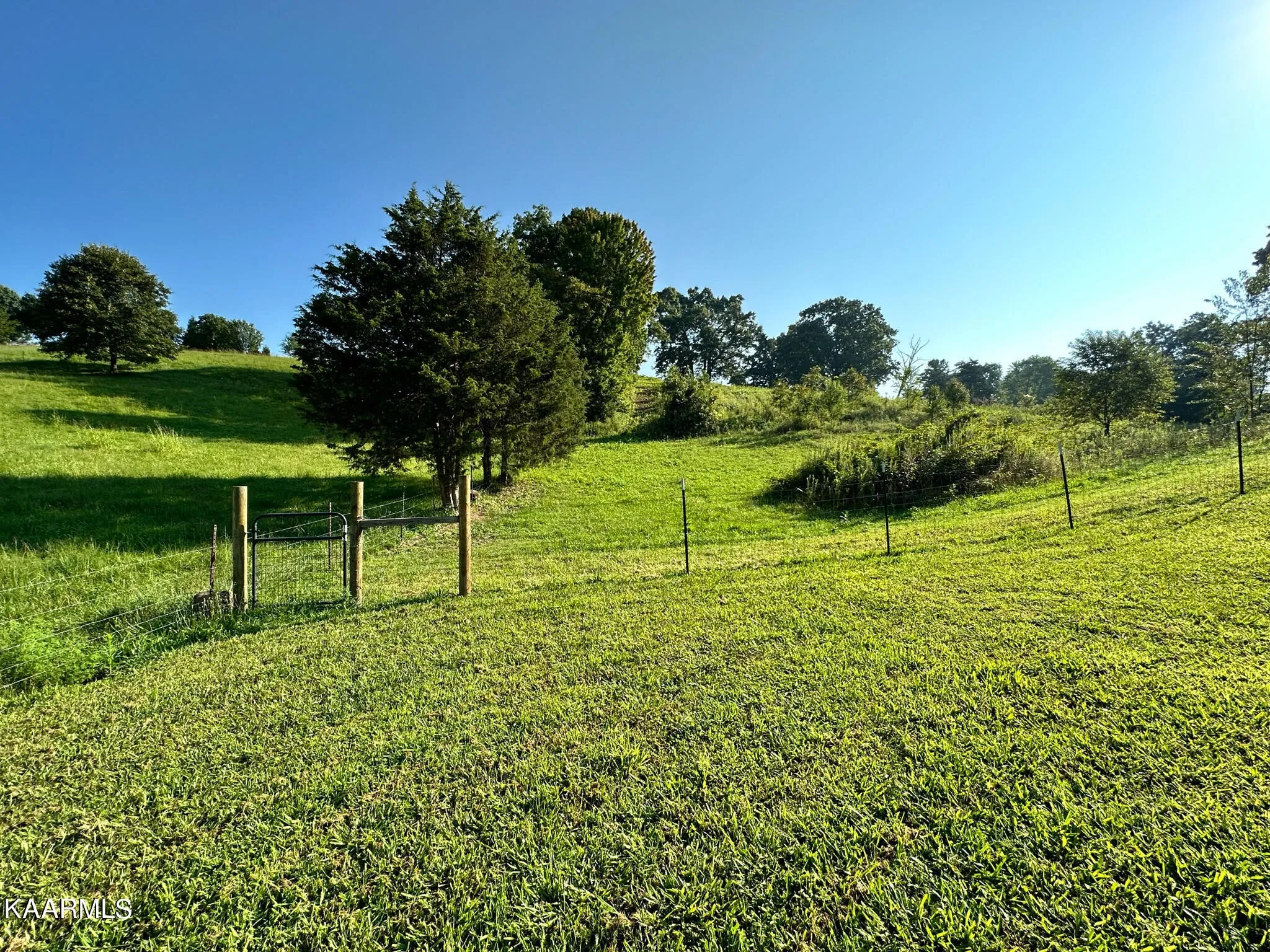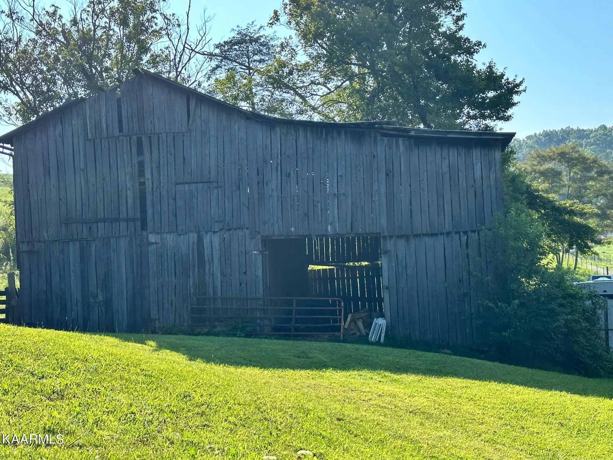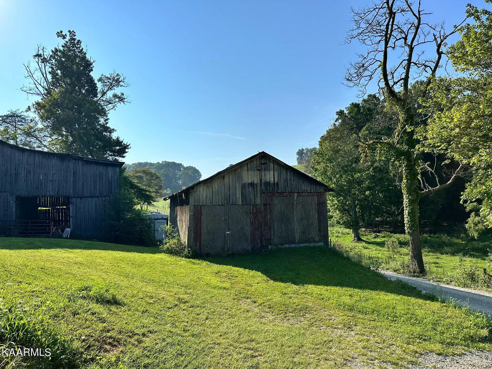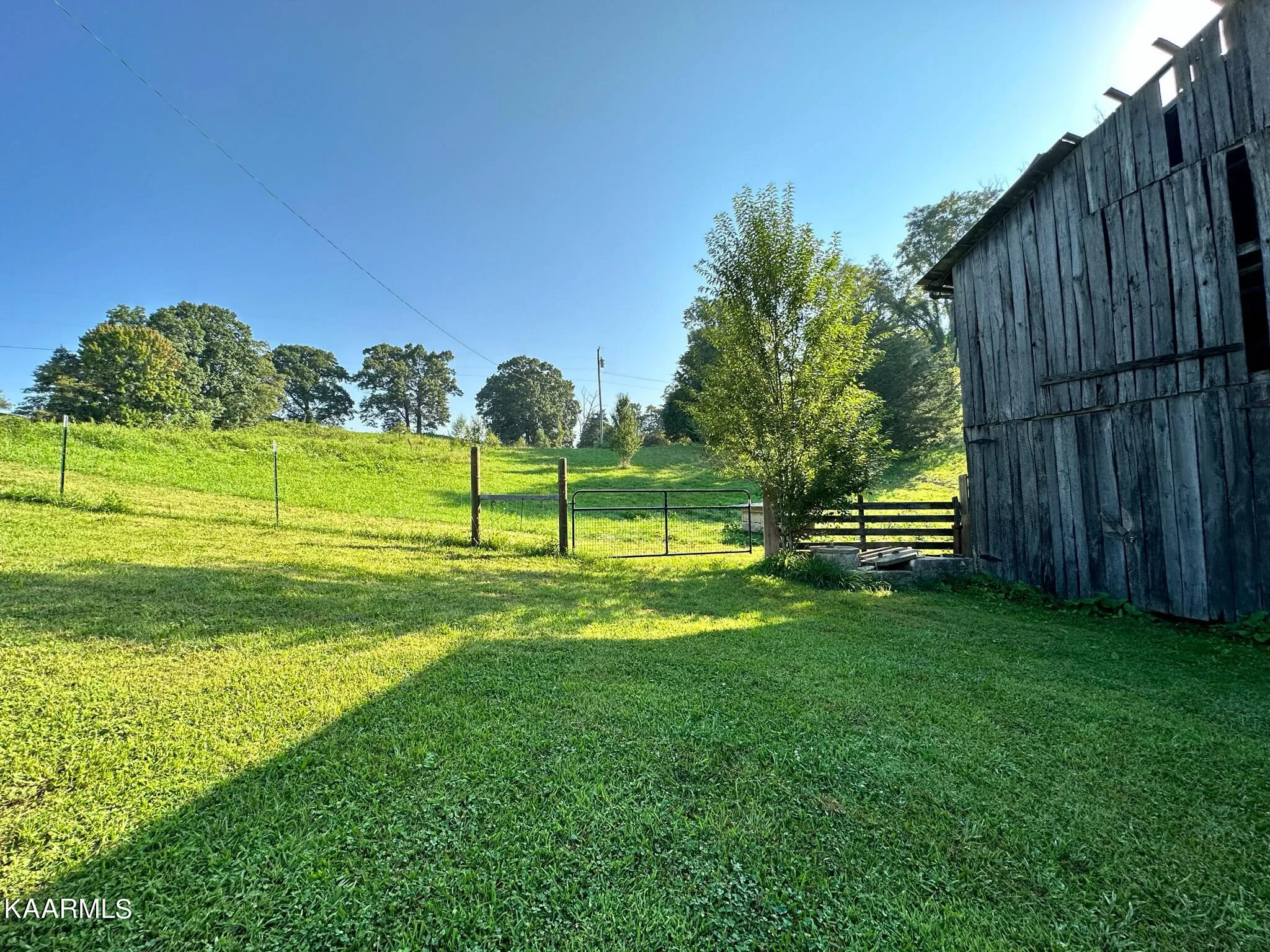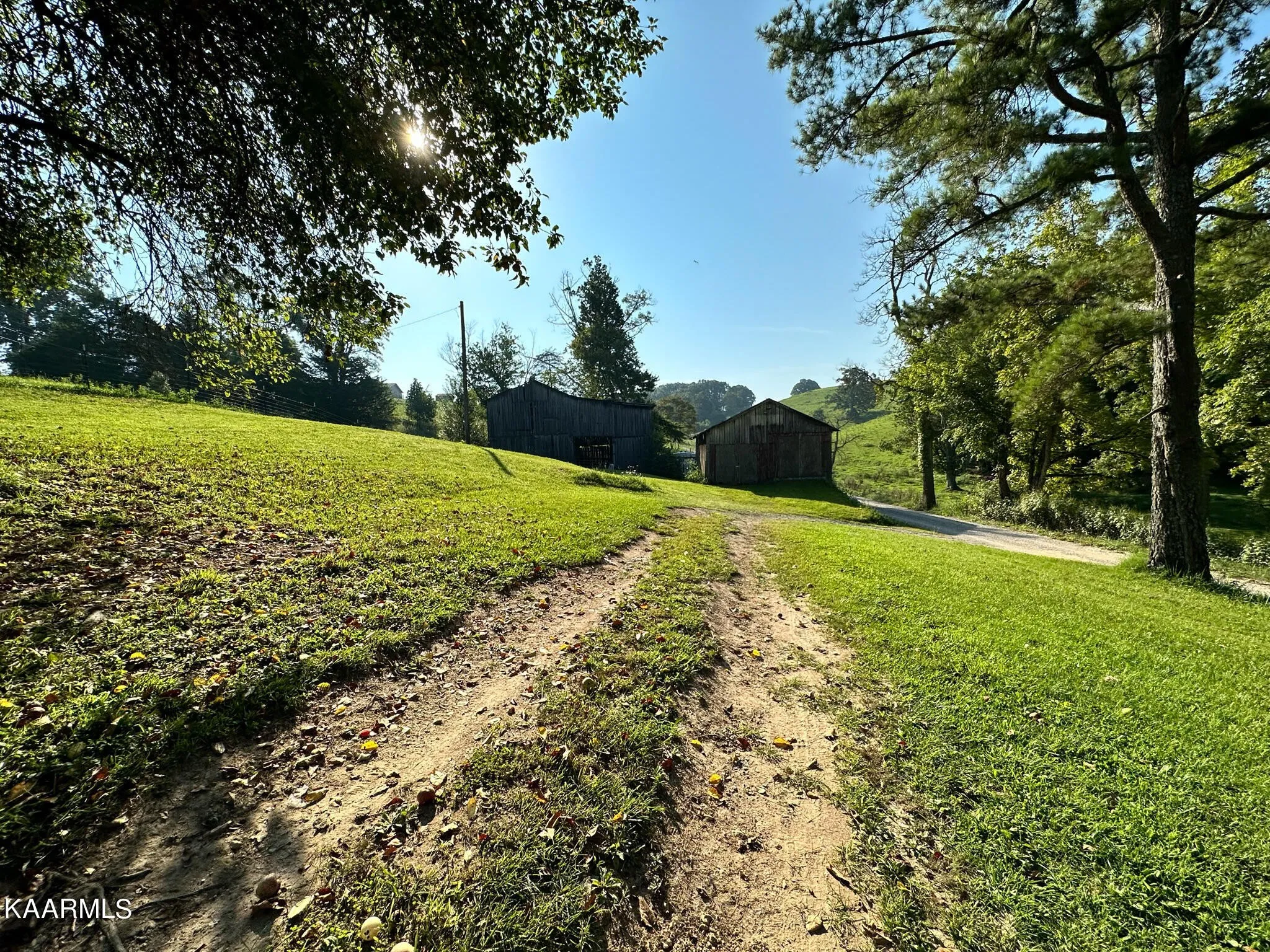 This Tennessee farmhouse for sale on 4.56 rolling, rural acres has a lovely setting. The property is open with two barns and a storage building. The interior of the two bedroom, one bath, 864 sf farmhouse has lots of warm wood and a couple of lovely old fireplace mantels.
