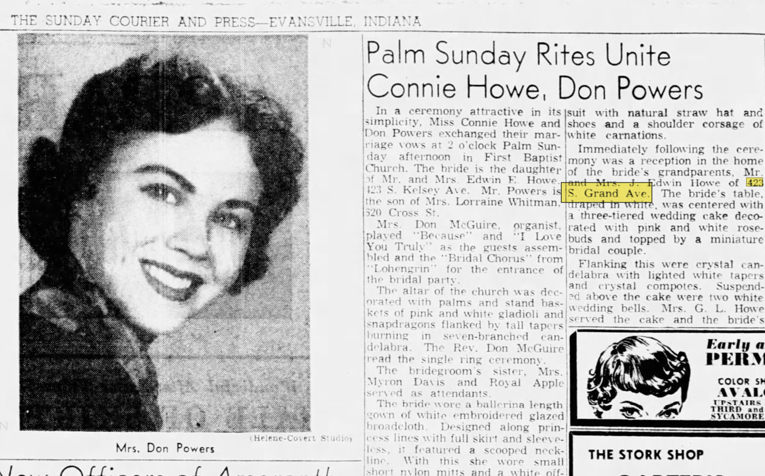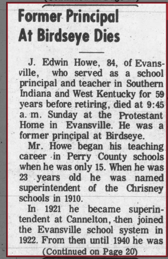 J. Edwin Howe (1886-1971) had this house built for his family in 1919. He was a school principal who made a salary of $4,500 in 1940. He lived in the home with his wife, Maggie Eckert Howe (1880-1962), and children, Lowell and Edwin. Later, Edwin’s wife and step-daughter were added to the residents. The Howe family lived in the home for more than five decades. In 1954, their beautiful granddaughter, Connie, even had her wedding reception in the home.