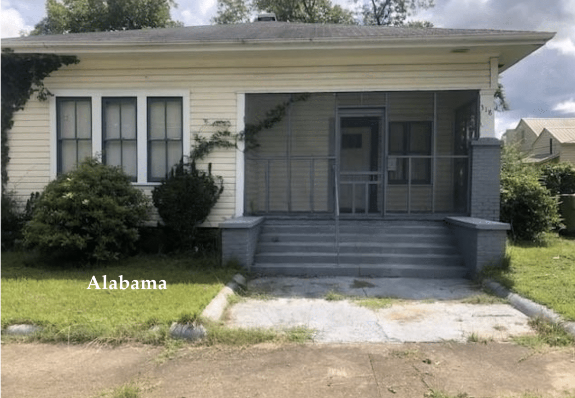 Cute Alabama starter home on a street of some fabulous homes. The three bedroom, one bath home has a screened front porch, fireplace, French doors, pink and black tiled bath, some hardwood floors, central air and heat, detached carport and city water and sewer.