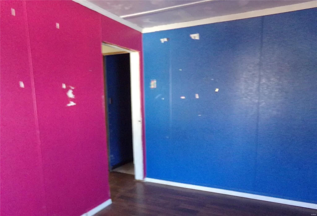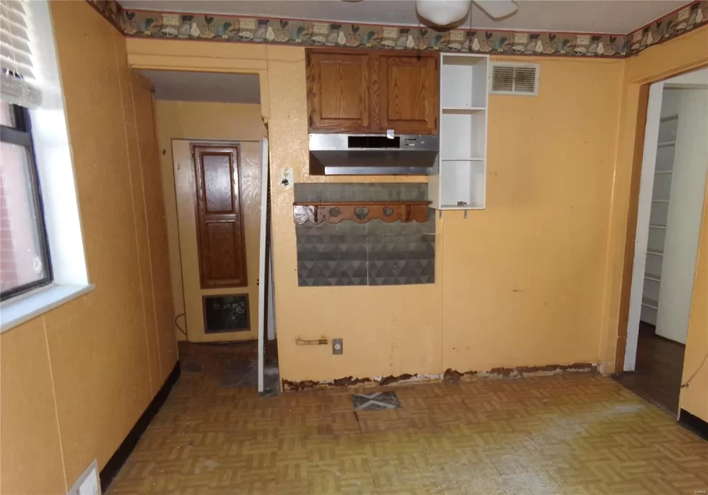 The exterior is handsome, but apparently, Home Depot’s clearance paint section sold out when owners of this handyman special came in.