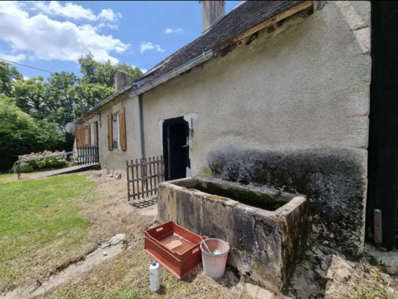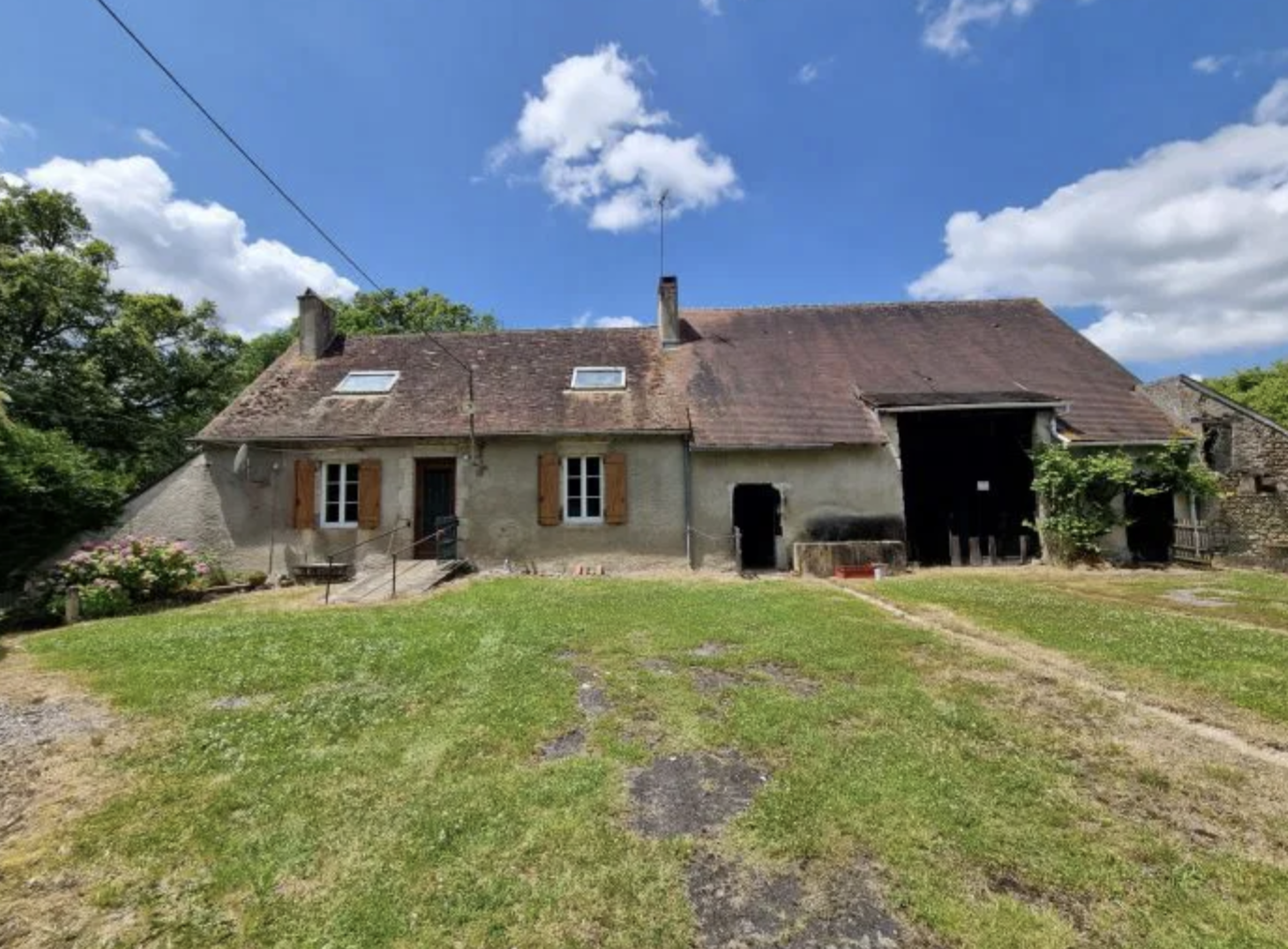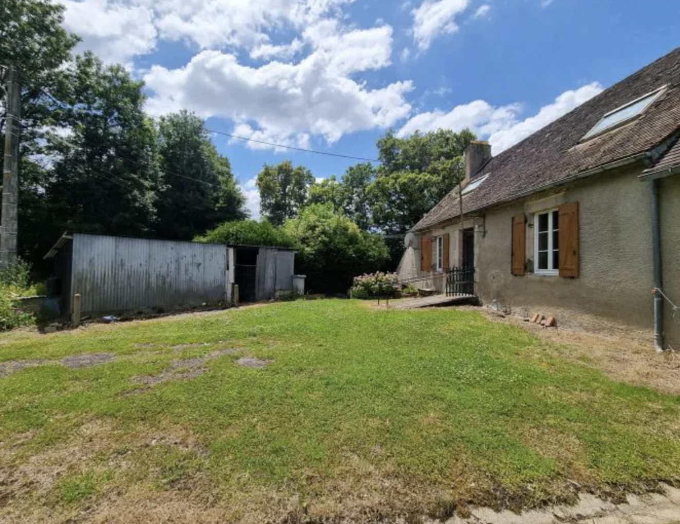 Two bedroom, one bath country cottage for sale in France with attached barn and gardens for renovation near Lussac-les-Eglises.