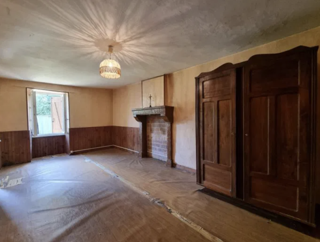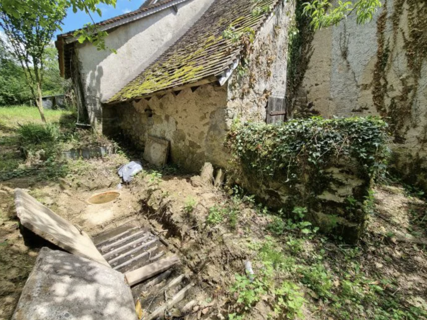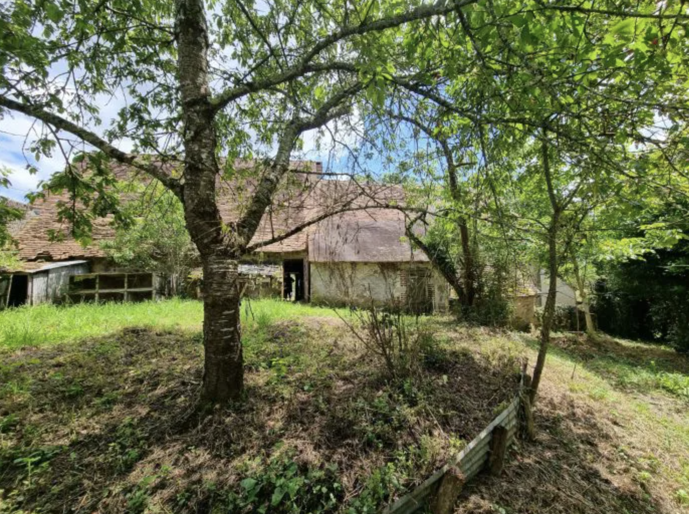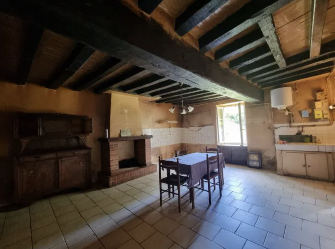 Two bedroom, one bath country cottage for sale in France with attached barn and gardens for renovation near Lussac-les-Eglises.