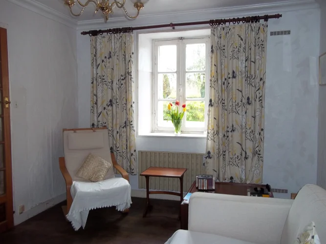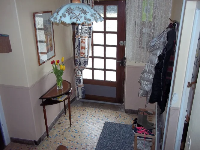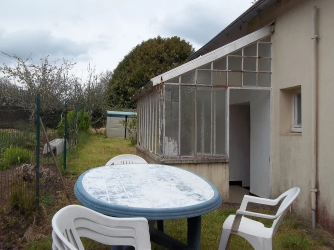 Here is a furnished, two bedroom, one bath, village home for sale in Brittany, about 40 minutes to the coast of France. It has a tiled entrance, tiled kitchen, French doors, decorative window and a greenhouse and garden area for those with a green thumb.