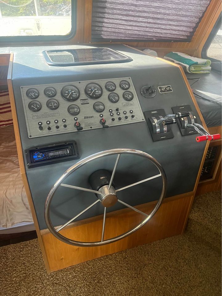 Gibson Sports Series 37 Ft Houseboat for sale by owner. It is a popular model among houseboat enthusiasts for its combination of comfort, functionality, and relatively compact size for ease of handling. It was designed for leisure and recreation, suitable for both short trips and extended stays on the water, but some mariners prefer to make it a live-aboard. Overall, the Gibson Sports Series 37 Ft Houseboat is a well-regarded model that offers a good balance of space, amenities, and maneuverability, making it a popular choice for those looking to enjoy life on the water.