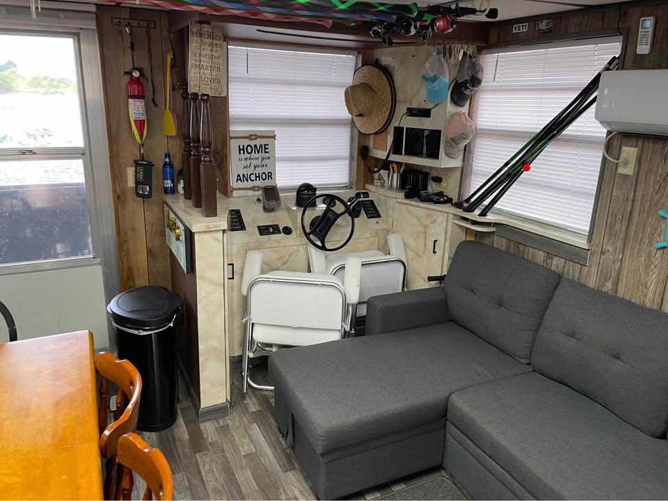 20 x 30 houseboat located on Lake Wales, Florida. The boat can stay where it’s at with transfer of slip agreement through the main office. Lot rent is 150+ utilities a month. Utilities range between $20 to $50 monthly. If you have any questions or to schedule a time to look at it message me through Facebook, please.
