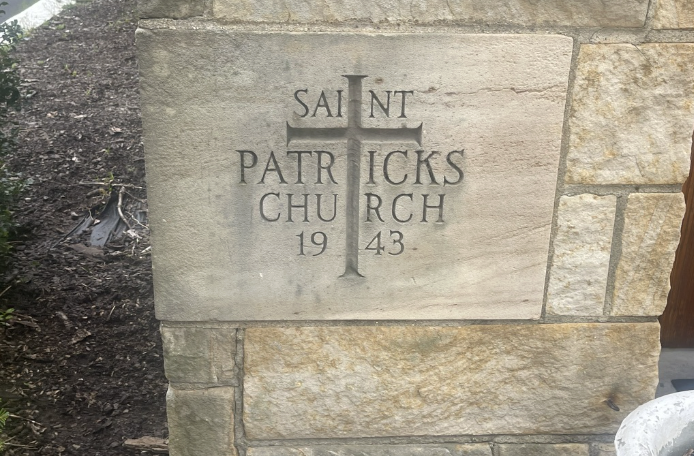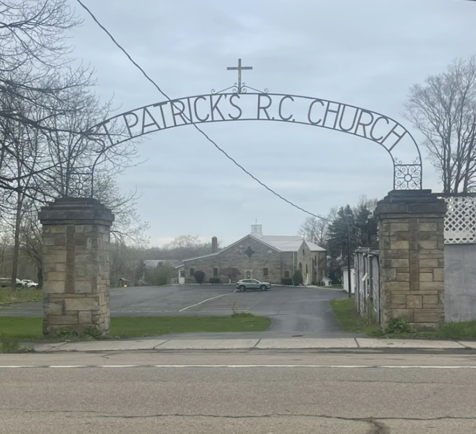 Originally Saint Patrick Roman Catholic Church, it became Saint Dominic Roman Catholic Church after parishes merged.