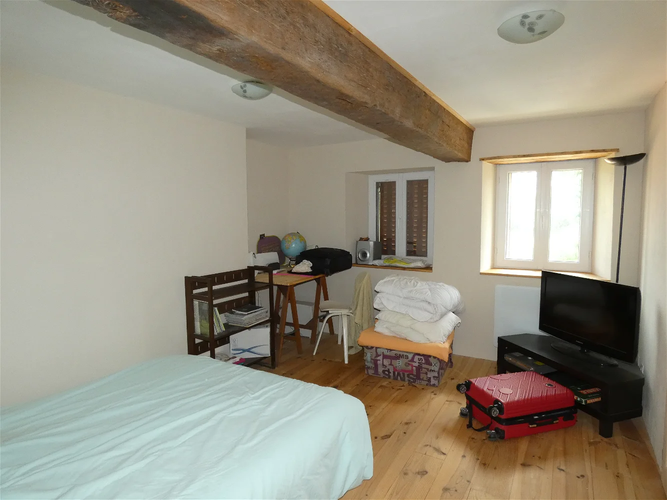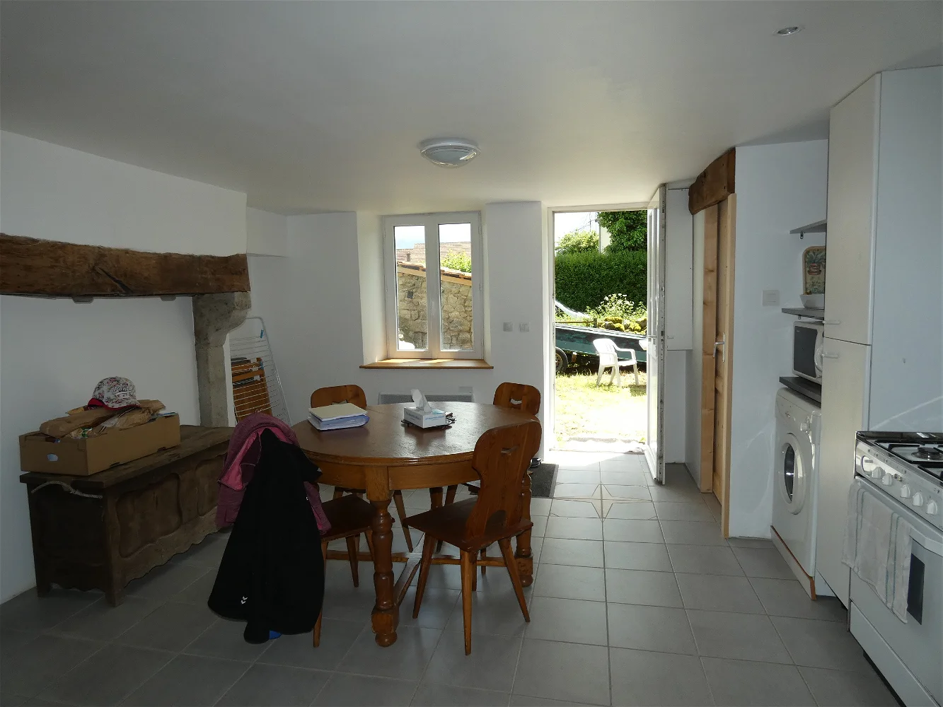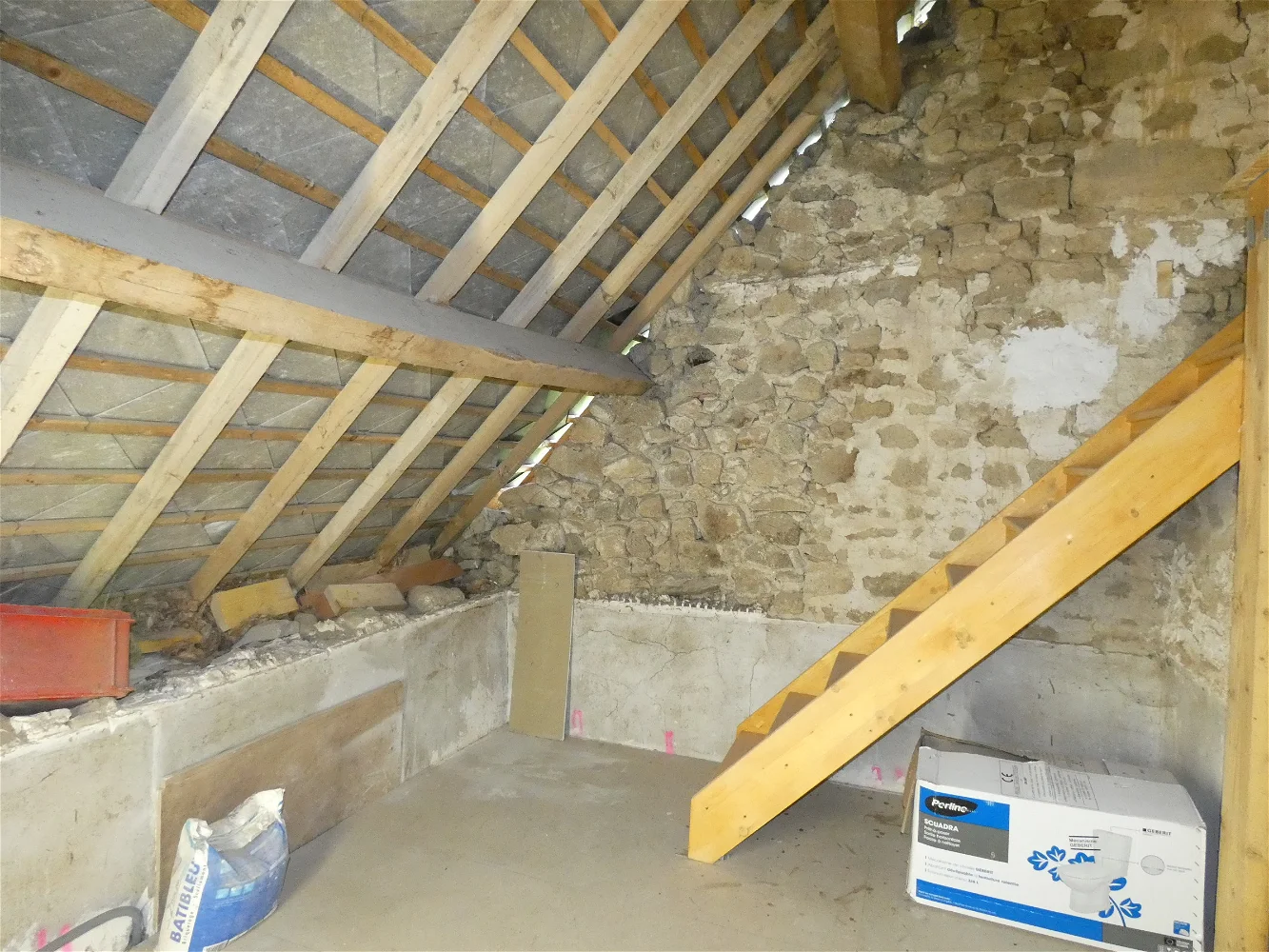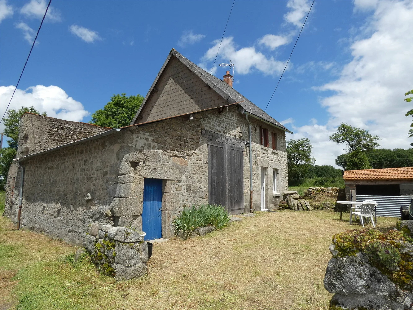 This charming stone cottage is located in hamlet which sits 10 minutes away from AHUN and 20 minutes away from GUERET, most of it has been nicely renovated except the loft, the living area is about 47m² with on the ground floor : a kitchen/dining room of about 16.55m² with an open fireplace, a toilet of about 1,81m² with a washbasin, and a sitting room of about 12.20m² with French doors giving access to the back garden of about 240m²; the first floor has been converted into a double bedroom of about 12.38 with a nice fitted shower room of about 2.10m²; another space of 10m² leading to a mezzanine of about 18m² could be converted into a second bedroom with ensuite shower room too ;