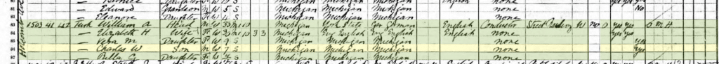 The Turk family lived at 1503 Holcomb Ave, Detroit, Michigan, from 1908 or 1909 until sometime before the Great Depression. William held a couple of job over the years, such as a conductor and a carpenter, but he provided a wonderful home for his family which included his wife, Elizabeth, and children, Vera, Charles and Marion.