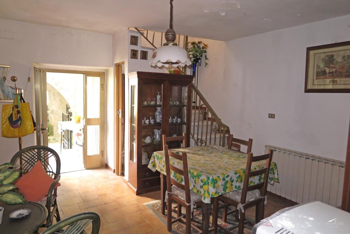 Village house for sale in Tuscany, Italy, on two levels with terrace-solarium and panoramic views set in a charming borgo, popular for the thermal spa and the tourist caves. The home is six miles to a ski resort and 14 miles to the coast.