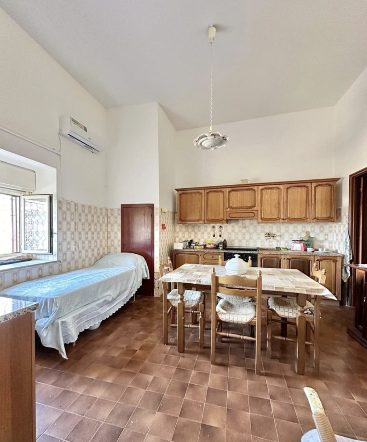 On the basement floor, the entrance opens onto a living room, perfect for moments of relaxation. This level includes a main kitchen, a separate kitchenette for further practicality in preparing meals, and a functional bathroom.