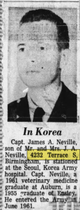 James was a veterinary graduate at Auburn University and served as a Captain at the Seoul, Korea, Army hospital.