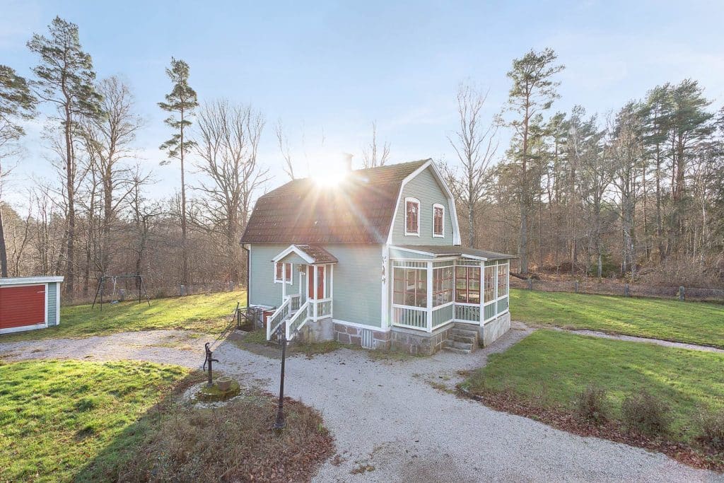 Built in 1933, here is a Gungvala, Sweden home for sale with two bedrooms, one bath, and outbuilding on almost a half acre. Love the sleeping porch!